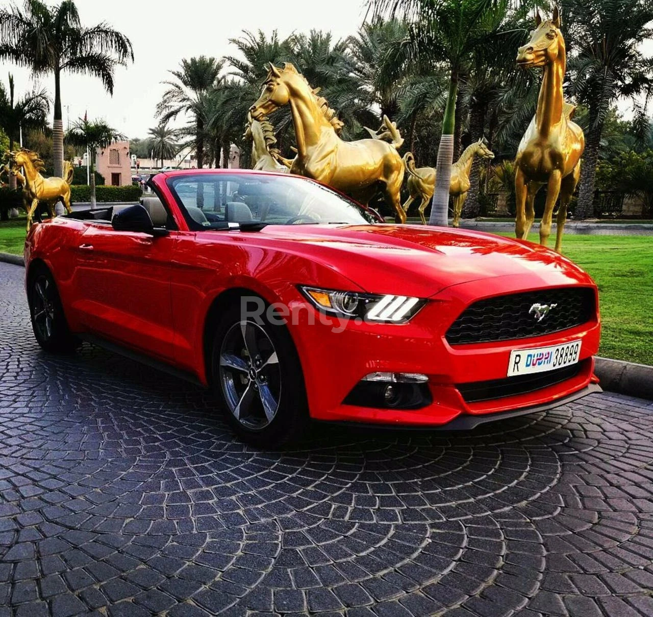 Rent Red Ford Mustang Convertible 2018 in Dubai