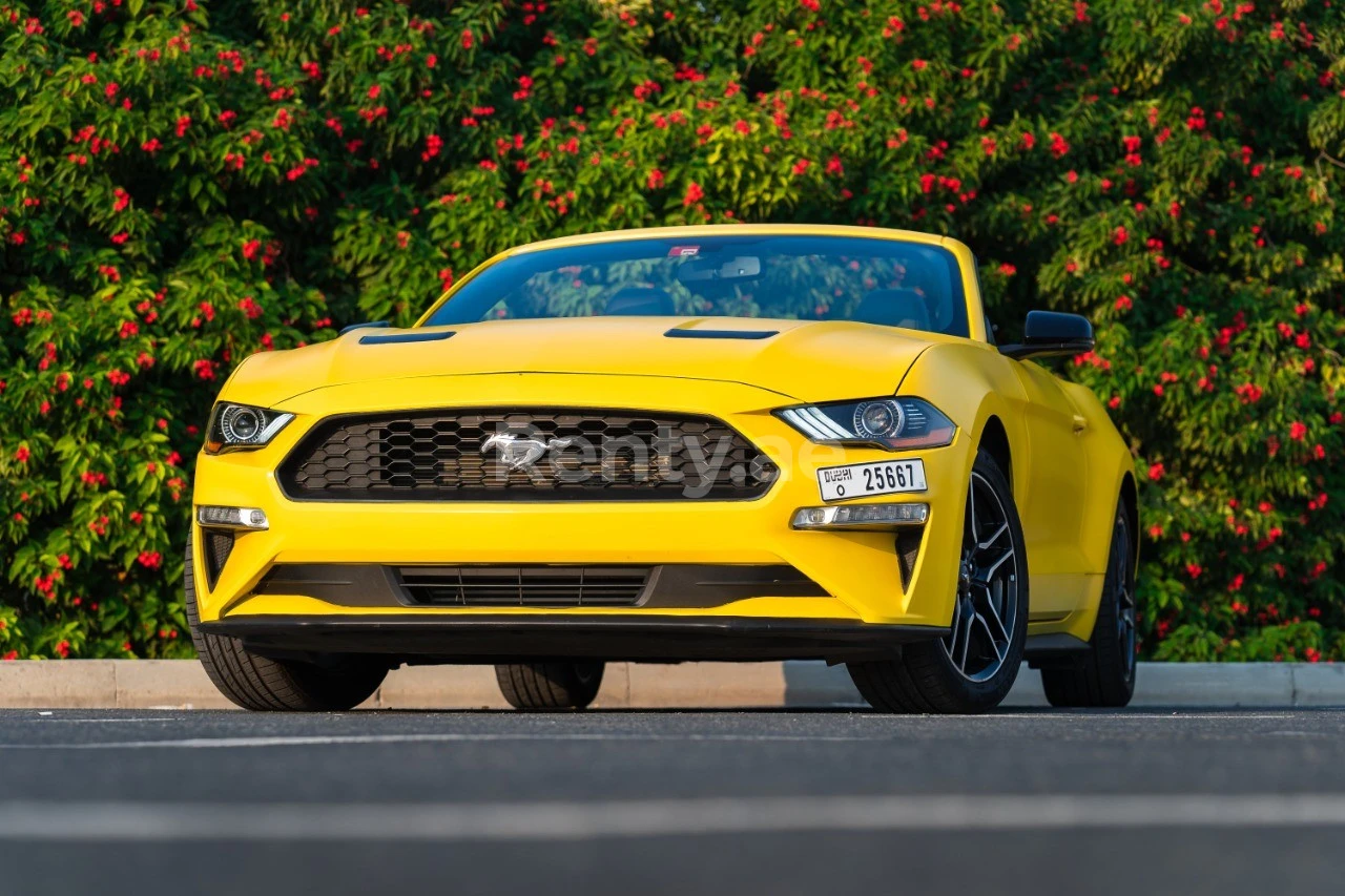 Rent Yellow Ford Mustang cabrio 2018 in Dubai