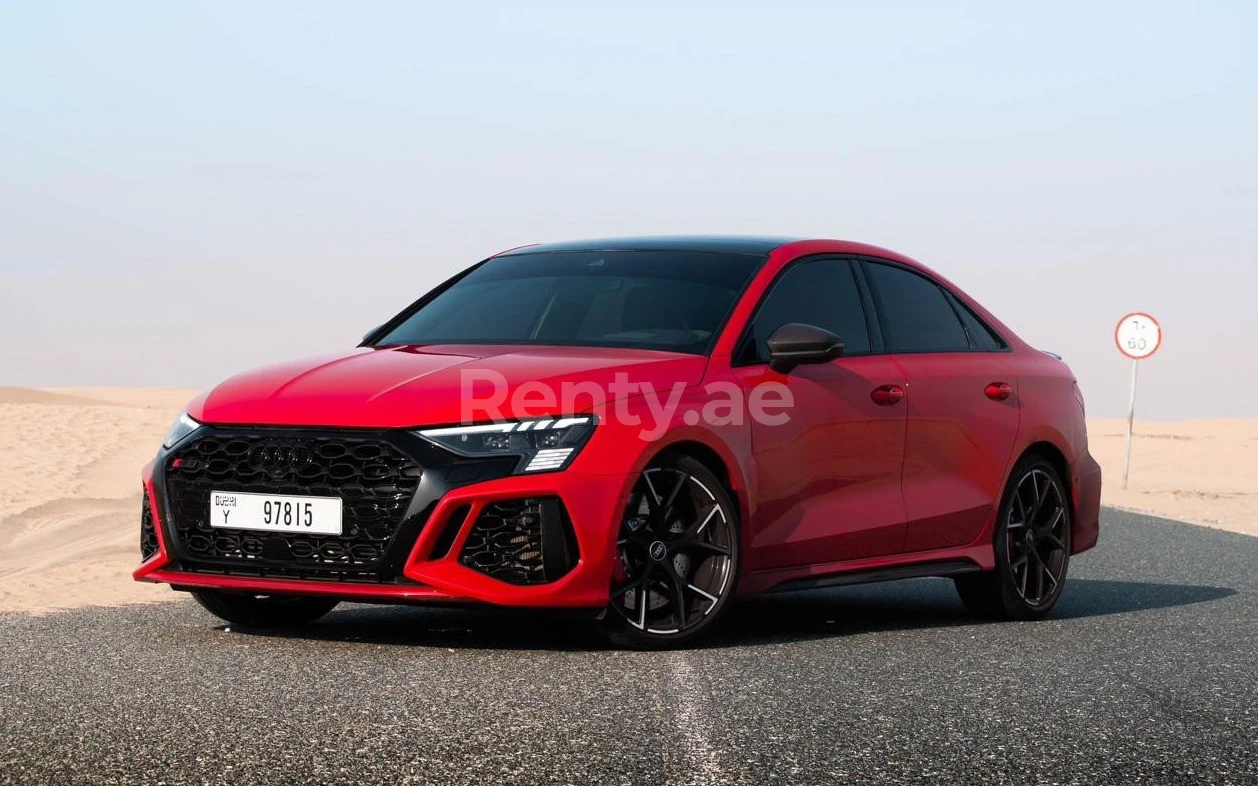 Rent Red Audi RS3 Red Pack Carbon 2022 in Dubai