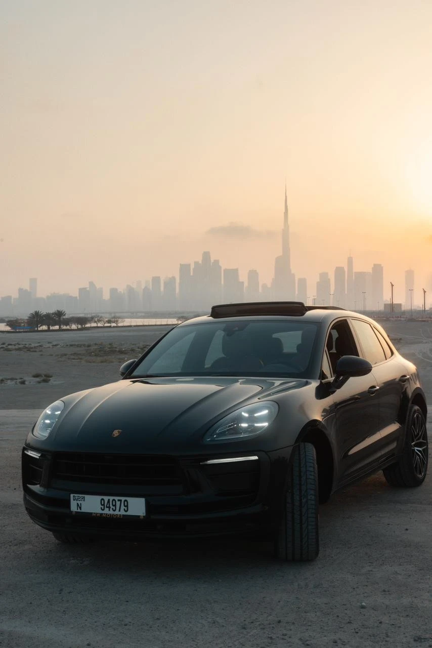 Rent Black Porsche Macan Platinum 2022 in Dubai