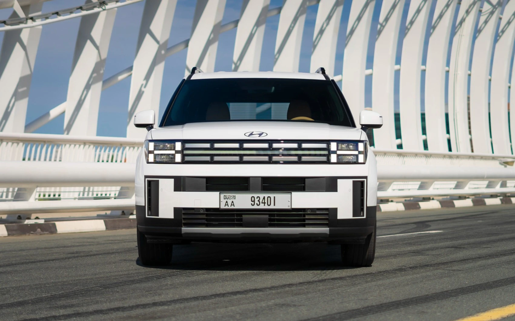 Rent White Hyundai Santa Fe 2024 in Dubai