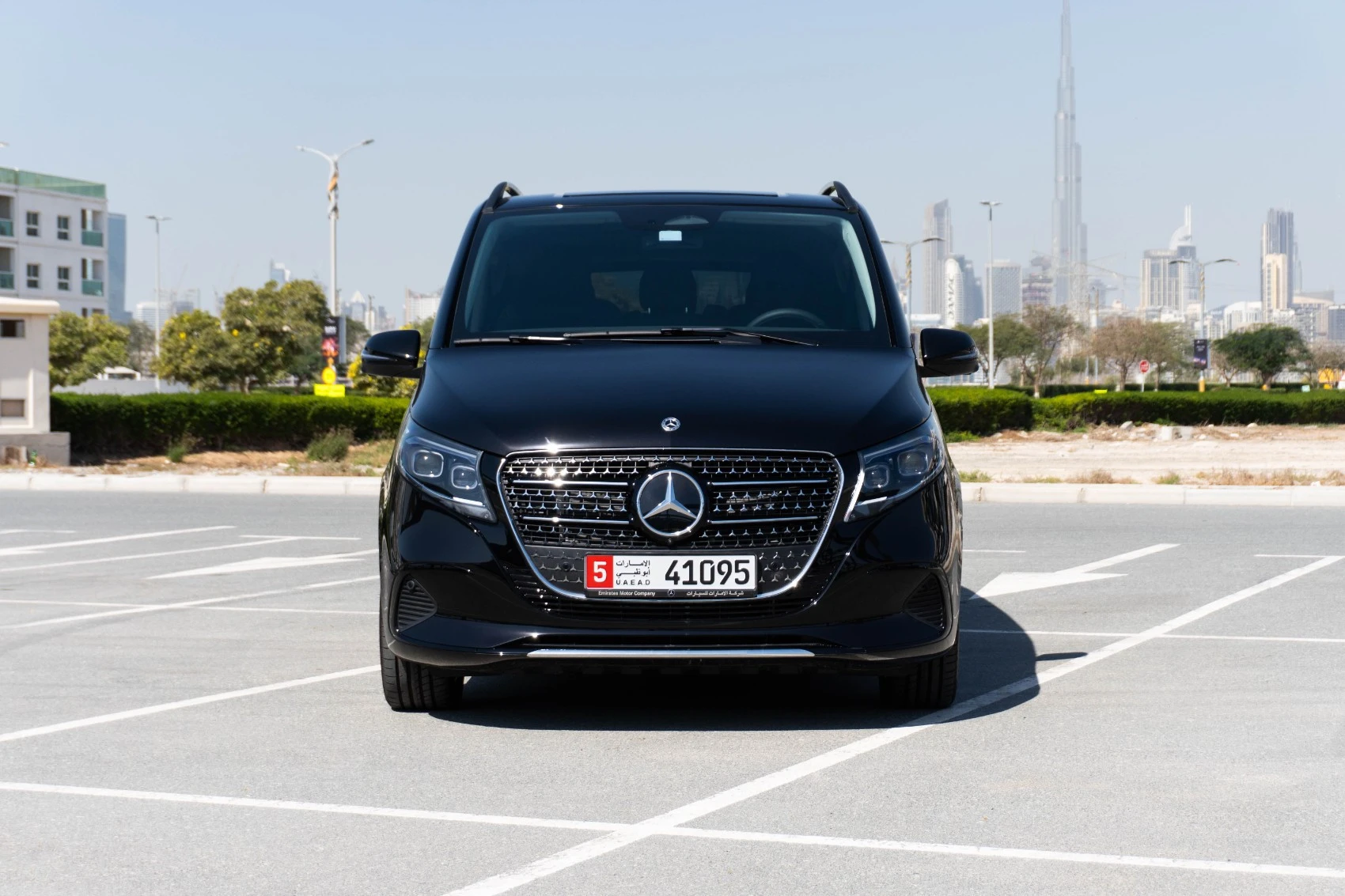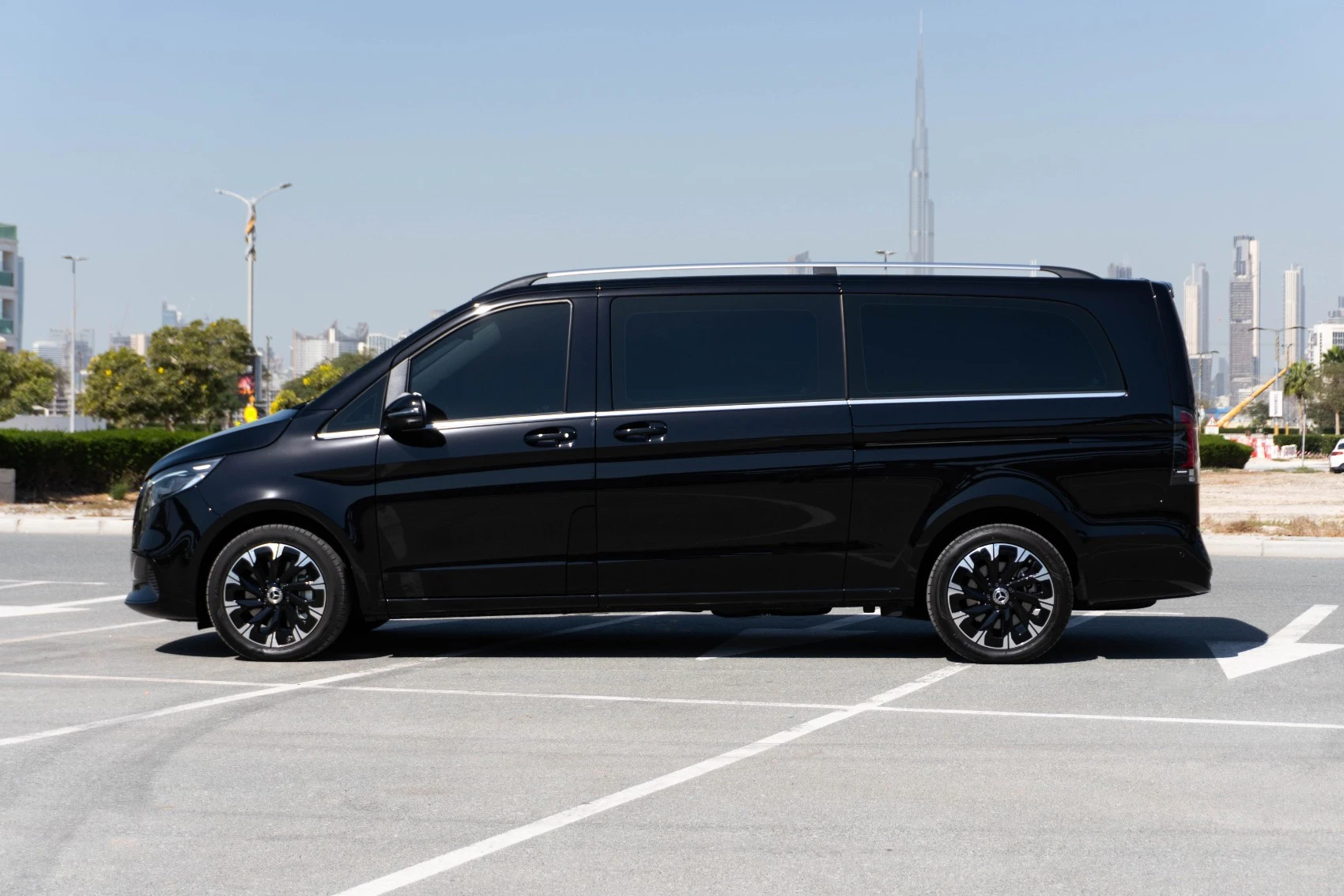 Rent Black Mercedes V300 Avantgarde Extra Long 2025 in Dubai