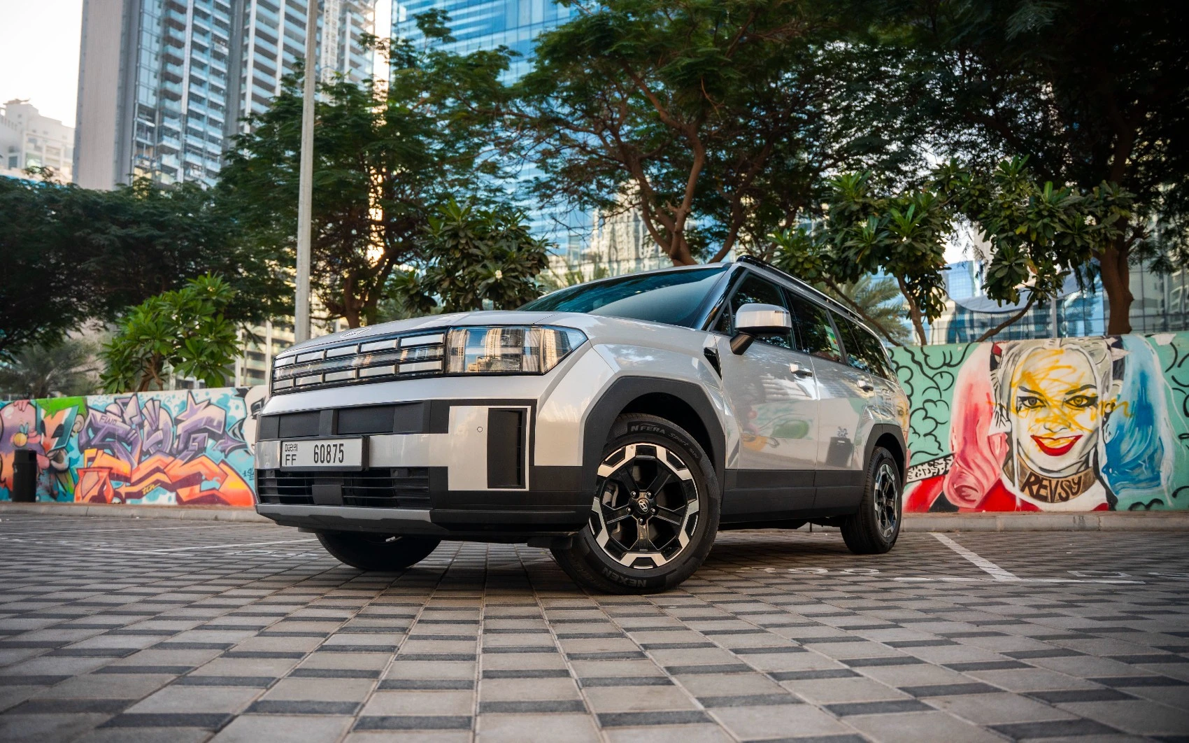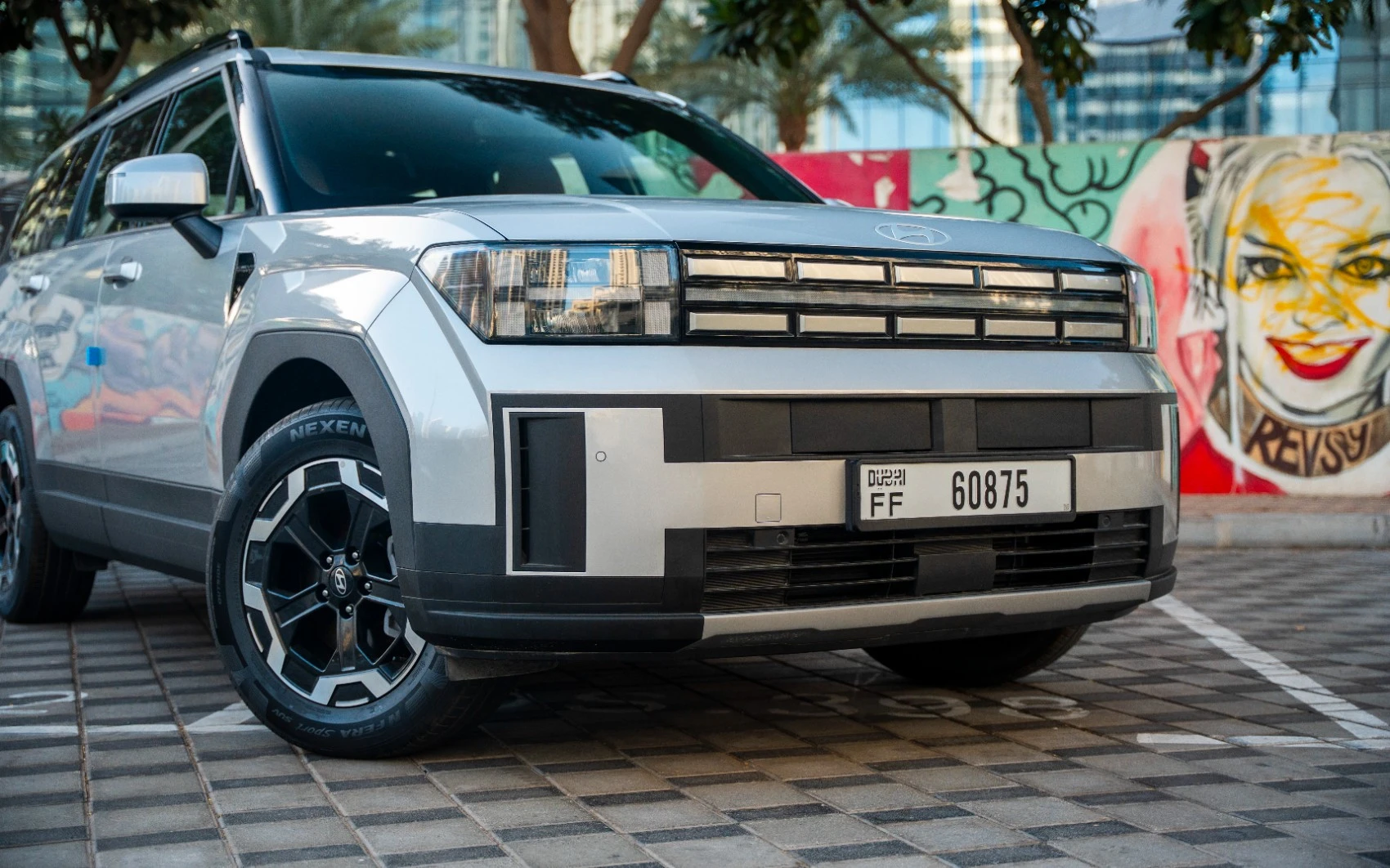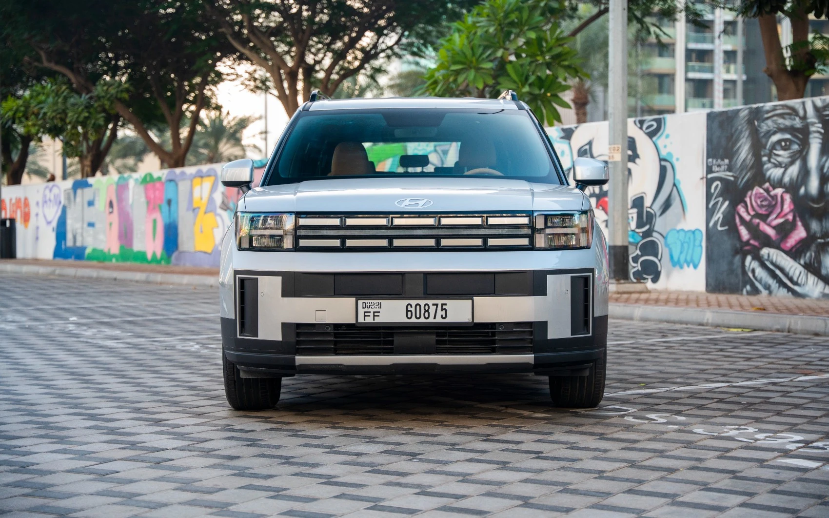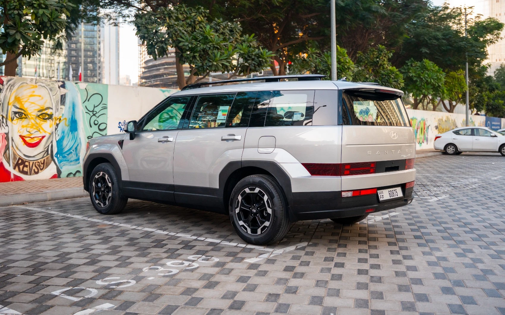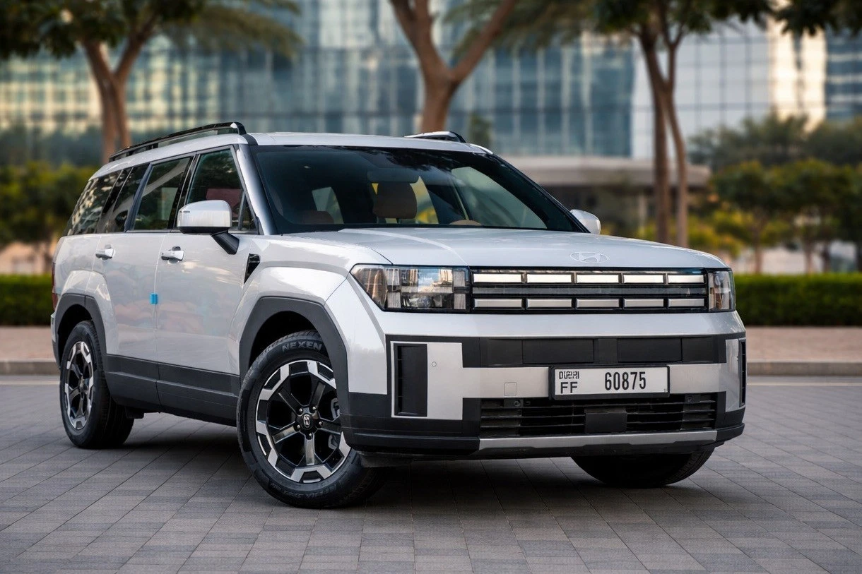 Rent White Hyundai Santa Fe 2025 in Dubai